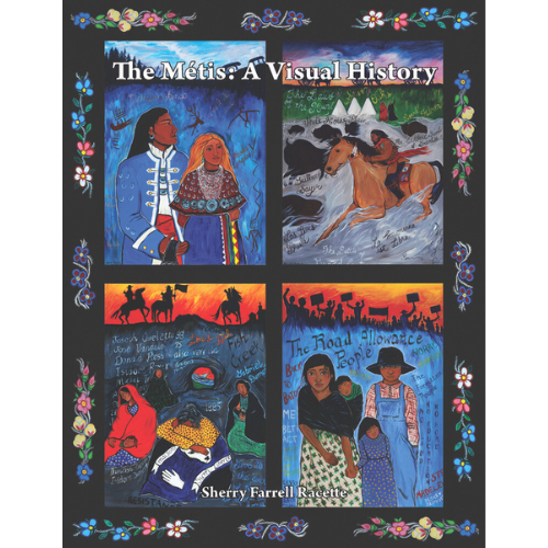 The Métis: A Visual History is a stunning and visually commanding resource covering over three hundred years of history and culture from the birth of the Métis Nation to our near past, a mere thirty years ago. Sherry Farrell Racette has blended her acumen as a historian and researcher with her skill as a visual artist to create four panels, each representing a different era of Métis history. Their value as a pivotal resource for history and art was recognized by a number of organizations each wanting to ensure that this important perspective on our history and culture is widely shared by generations to come. In this book, Sherry shares about the significance of the images expressed in these beautiful works of art.